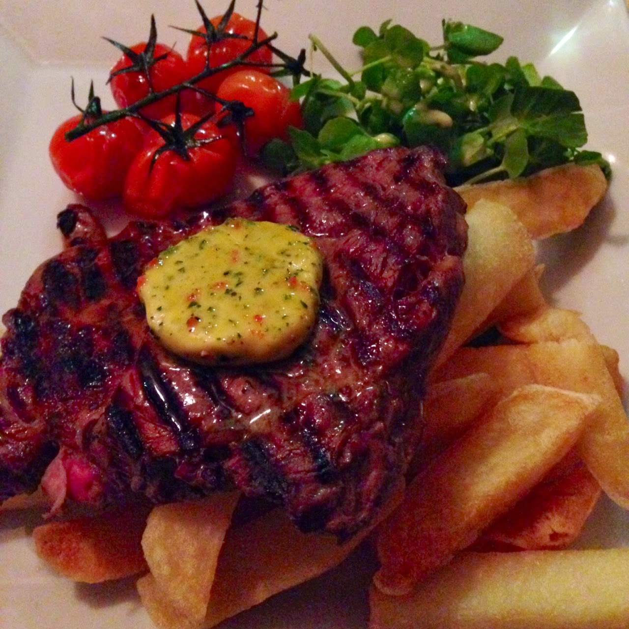 The food tasted fresh, with really well thought through flavours. Very impressed with starters it was on to mains. I couldn't resist the ribeye steak with chips and 'steak butter'. The meat was melt in the mouth, and the chips nice and crunchy on the outside and soft inside.